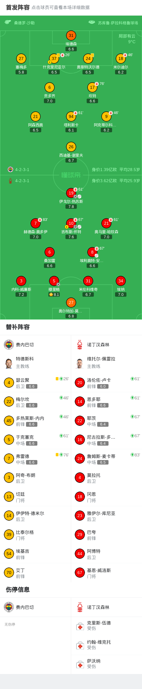 北京时间2月20日欧足联欧洲联赛 淘汰赛附加赛首回合,费内巴切对阵诺丁汉森林。诺丁汉森林穆里略破门,伊戈尔-热苏斯破门,吉布斯-怀特破门。最终比分费内巴切 0-3 诺丁汉森林。